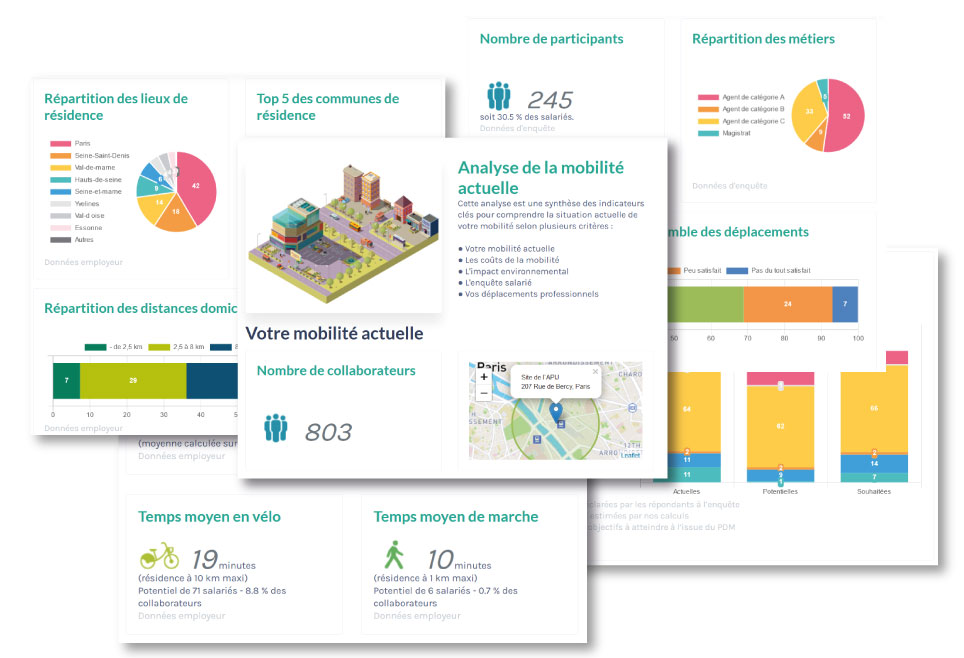 Avant d’engager une démarche de transition, il est essentiel de comprendre les pratiques de mobilité existantes et leur impact. Nous réalisons un diagnostic complet des déplacements domicile-travail, intégrant le calcul des distances et des temps de trajet pour chaque salarié, tout mode de transport confondu.